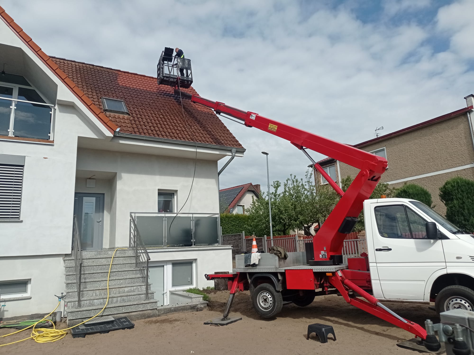 Posiadamy własny podnośnik koszowy, co daje nam pełną niezależność od firm zewnętrznych i pozwala na sprawną realizację nawet wymagających prac na wysokości. Wykonujemy m.in.: